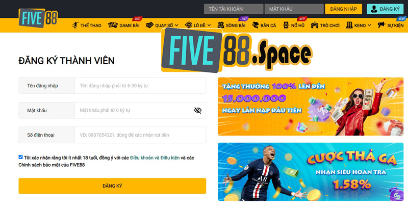 Đăng ký Five88 – Tạo tài khoản cá cược nhận khuyến mãi